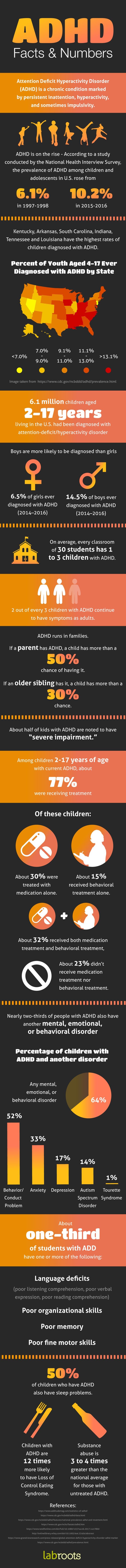 Download and check, “ADHD Facts & Numbers” Infographic by labroots.com, and learn about Attention Deficit Hyperactivity Disorder (ADHD). ADHD is a common neurobehavioral condition affecting children.