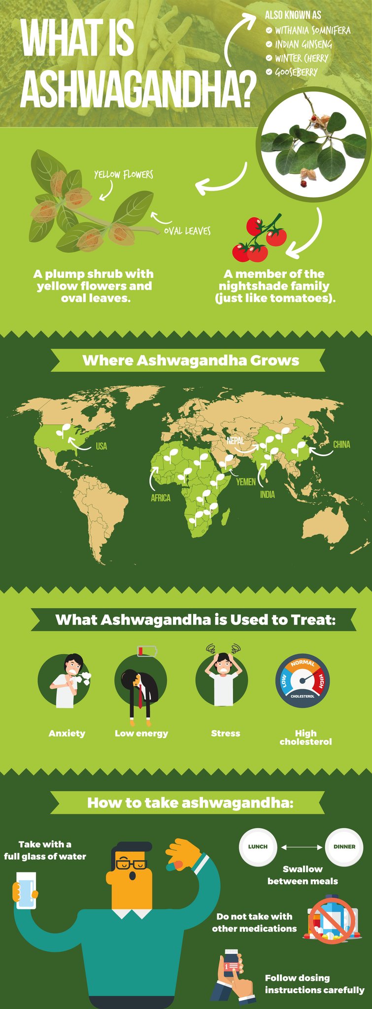 . Ashwagandha is a very potent herb praised by herbalists, nutritionists, and health enthusiasts alike. Ashwagandha has many benefits. Numerous clinical trials have been done on Ashwagandha and its health benefits. Studies have shown that ashwagandha can help with reducing anxiety and stress, increasing energy and mood, reduced cholesterol, male fertility, thyroid function and memory/cognition. Check out this infographic to know more.