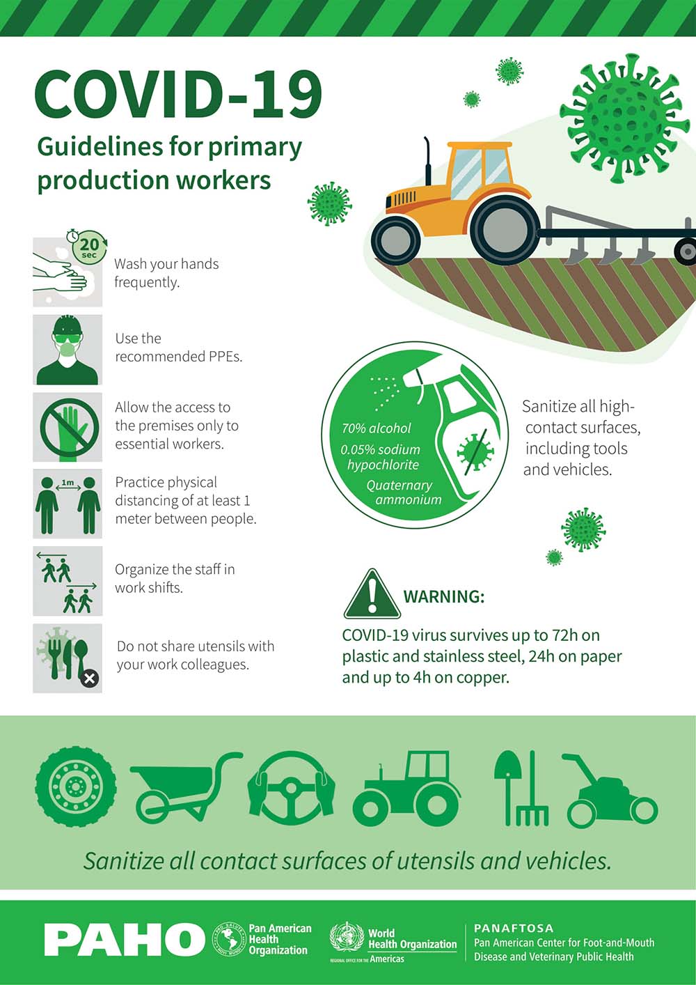 This infographic by the World Health Organization provides important useful guidelines for primary production workers like use of PPEs etc.