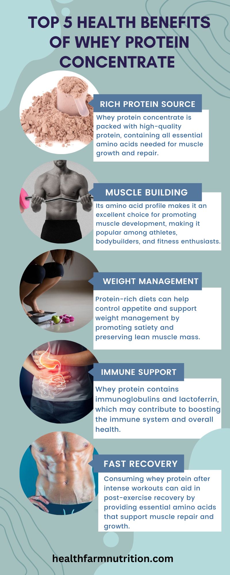 Whey protein concentrate is a nutritional powerhouse derived from milk during the cheese-making process. It is renowned for its impressive health benefits, making it a popular choice among fitness enthusiasts, athletes, and those seeking optimal nutrition. Here are some key advantages. For more details, visit this link: https://healthfarmnutrition.com/products/healthfarm-muscle-whey-protein-isolate-concentrate-premium-blend-of-whey-protein