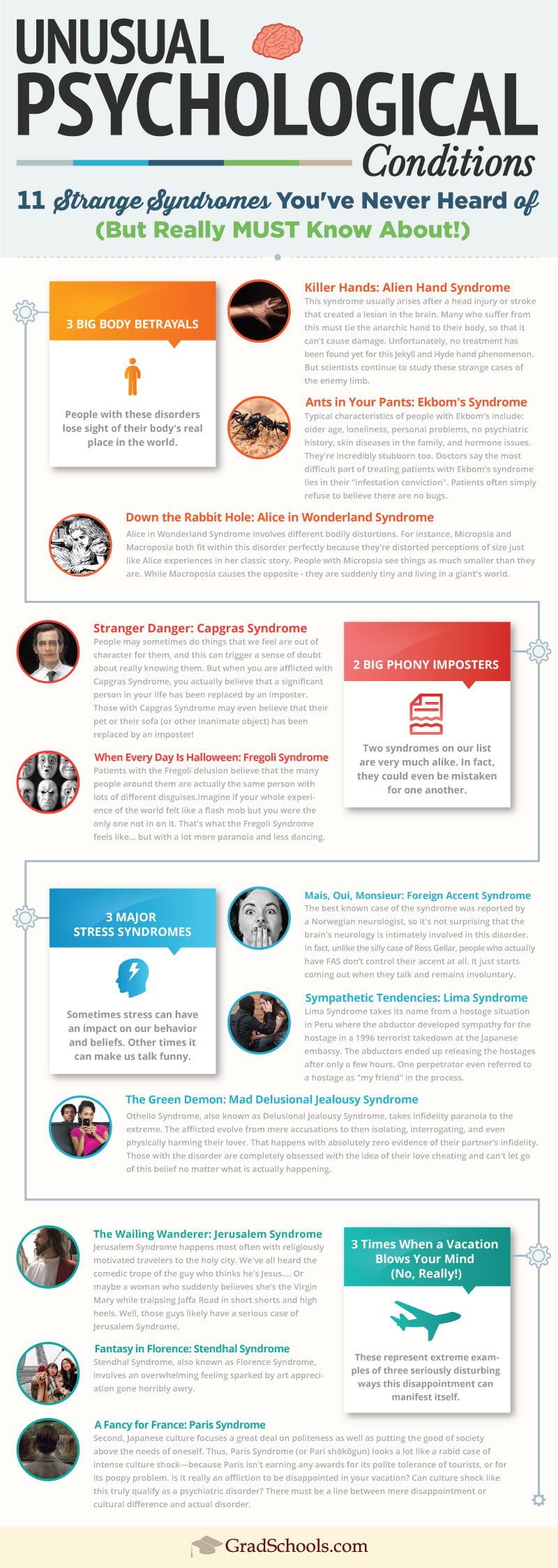Unusual Psychological Conditions – 11 Strange Syndromes You’ve Never Heard of Infographic