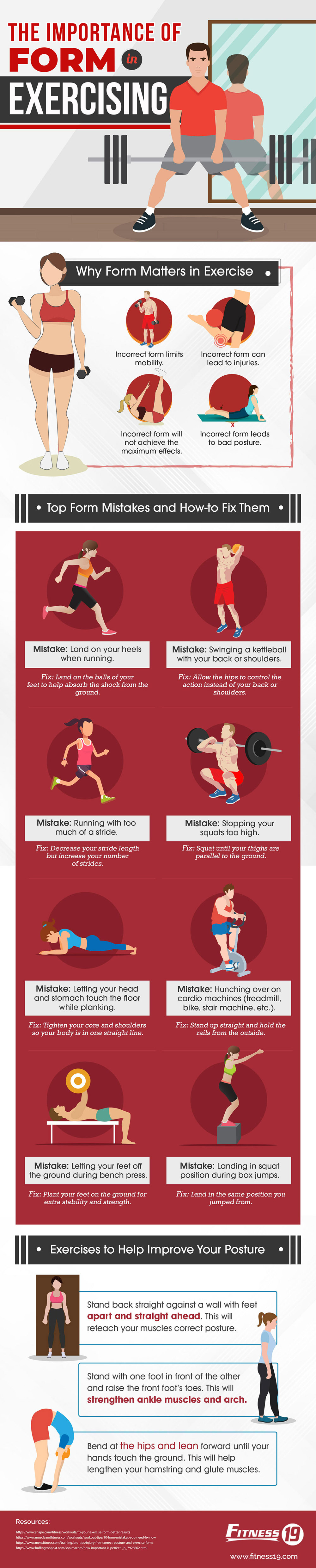 Download and check, “The Importance of Form in Exercising” Infographic developed by fitness19.com, and know the importance of following proper form while exercising. This is very crucial if you want to achieve your fitness goals.