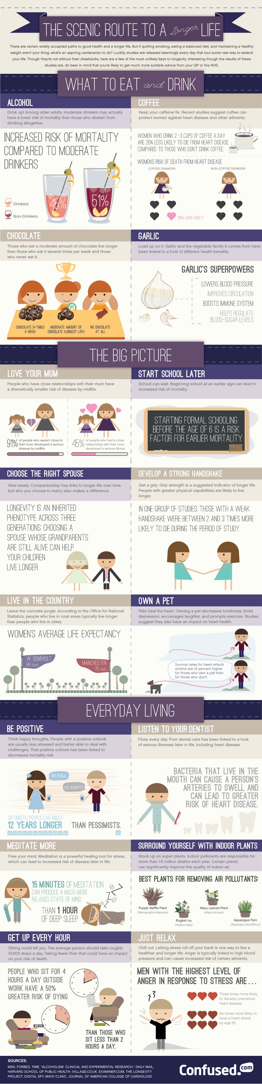 Download and check, “The Scenic Route to a Longer Life” Infographic by 100proof.me, and learn how to love longer by altering your lifestyle to accommodate health food and drink.